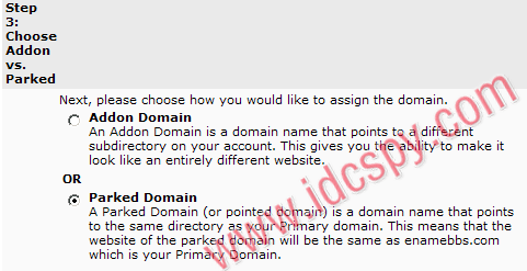 3、选择域名的操作方式,选择“Parked Domain”,如下图: