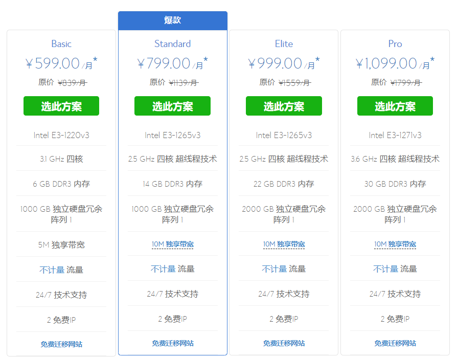 BlueHost香港主机/服务器,位于香港Telehouse机房,5M带宽,不限流量,接入电信CN2线路,国内访问速度更快。目前BlueHost香港主机/服务器提供四种方案,支持Linux和Windows系统,具体方案配置如下: